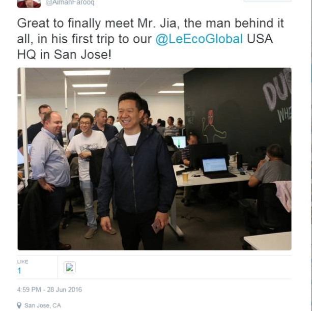 当地时间6月28日,贾跃亭访问LeEco美国总部