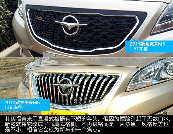 醒目的人一眼就看出来2015款福美来M5 1.5T车型的脸变了,其实还有轮毂,至于新款M5的变与不变,到底还有哪些?