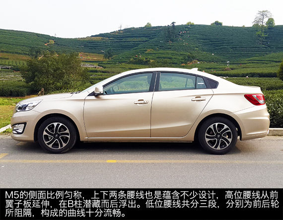 刹车:刹车点头现象不明显,M5的刹车特性是线性但软,好处是能照顾到乘客的舒适性,缺点则是刹车有点心里没底。另一点就是以往评测1.6L手动挡车型反映的踏板距离过近的问题在新车上并没有出现。