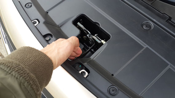 另外一个值得吐槽的地方是发动机的卡扣,现在越来越多的发动机盖都装了卡扣,而在按了开启发动机盖的按钮后,大多数人的操作应该是左手提着盖,右手去寻摸卡扣解锁,M5的问题在于卡扣的位置太低,当我的右手在缝里扫来扫去却什么都摸不到的时候,真是急的满头汗,并且M5的卡扣是向右掰,于是我必须换右手提着盖左手去掰卡扣,真是逼死右撇子的节奏,哀叹这个设计实在是逆天。