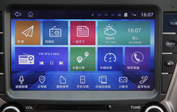 从界面上看,HM Link是一个建立在安卓上却走Metro风格的系统,当然,磁贴风格更有助于识别和触摸。首页提供的功能有多媒体、导航、车辆信息、联系客服、手机互联和在线新闻等等,应有尽有。
