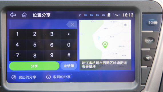 位置分享,可以将车所在的实时位置分享给电话簿里的好友,这个功能在手机没有GPS信号的情况下是一个比较好的补充。