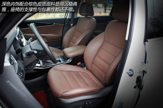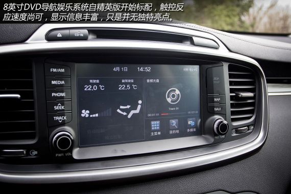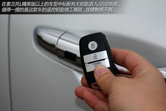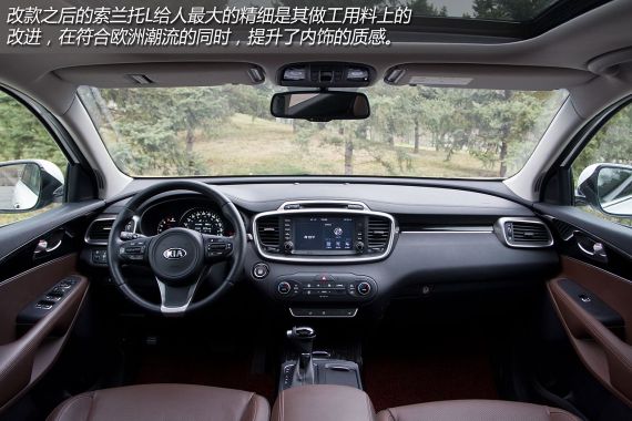 在做工上,索兰托L中控台上方采用了搪塑工艺并植入软性材质,手感上佳,配得上进口车的身价。而门把手处也采用了软性皮质材料,握感舒适。只是车门内侧包边的材料为硬质塑料,没有与整车豪华的风格相统一,有些遗憾。