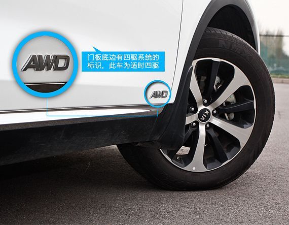此外全车对于四驱系统的标识仅体现在前门两侧下沿处,车尾部并没有找到区分四驱/两驱版本的标记。而仅有的AWD标识其实只是适时四驱系统的意思,并非大家通常所认为的全时四驱系统的意思,这套系统是基于横置发动机开发的由多片离合器负责专递后轴动力的结构,一般行驶状态为前轮驱动,具体讲解将在动力篇细说。