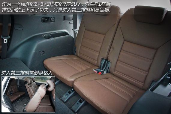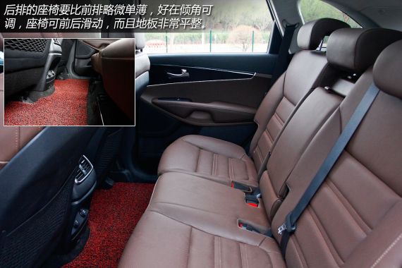 主驾驶席为电动座椅带腰部支撑调节,副驾驶席在精英版以上的车型中是具有电动调节功能的。座椅整体舒适性还有提升的空间,好在支撑性还不错,符合人体工程学的设计。此外索兰托L前排后排的座椅都可以有较大幅度的调整,可以满足一般人的乘坐需求。