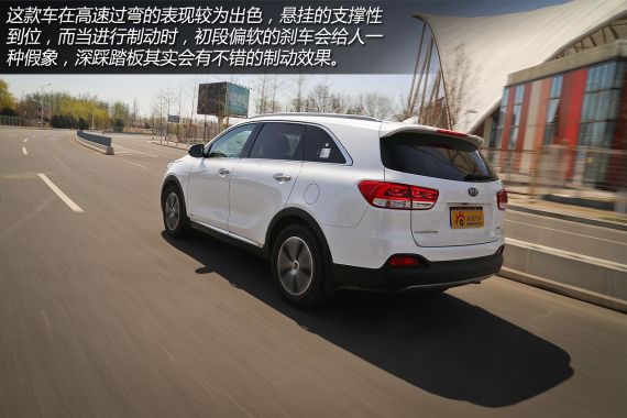 可以说60的轮胎扁平比让索兰托L在通过非铺装路面时拥有了不错的舒适性,不过最让编辑满意的还是这套悬挂系统的调校,不同于全新胜达后悬挂那般的坚韧生硬,更不像汉兰达那般绵软松散,索兰托L的底盘功力确实让人印象深刻。它既有对小幅颠簸较好的过滤,还能在起伏较大的路面上给予不错的支撑性,而且路感也较为清晰。