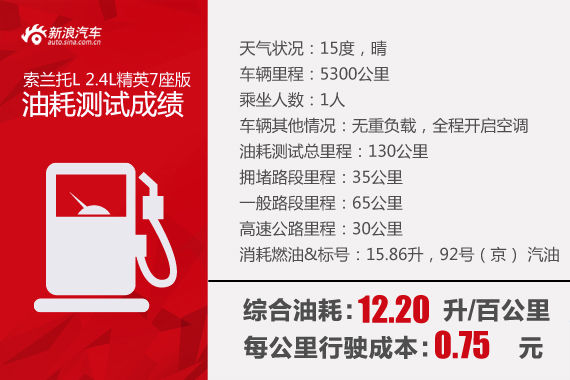 在油耗测试环节,编辑并未对这款2.4L引擎的索兰托L抱有多大的期待,当然最终的测试结果也是在意料之中,12L出头的百公里油耗算是中规中矩,当然,我们采用的测试环境比较适用于较为拥堵的城市路况,如果按高速巡航的测试方法,10L以下的每百公里油耗的成绩也是可以得到的。
