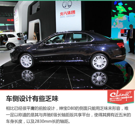 绅宝D80定位于中大型轿车,基于奔驰E级长轴距版(V212)共享平台打造而成,新车长宽高分别为4946mm/1860mm/1483mm,轴距为2830mm,保证充裕宽敞的车内乘坐空间不成问题。