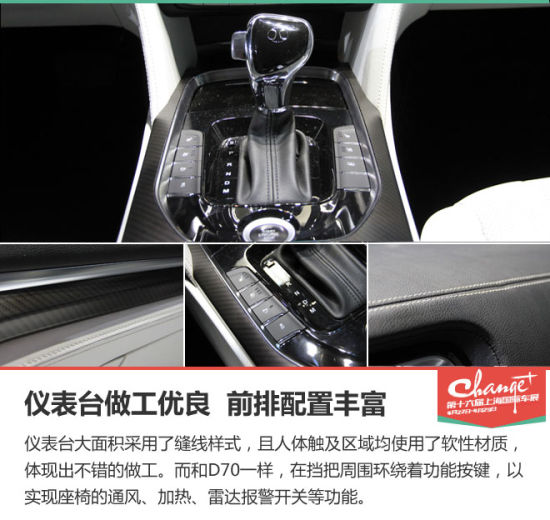 当然在配置方面绅宝D80也没让我们失望,加热通风功能的座椅、后排座椅和音响系统控制按钮、后排独立显示屏等等,都是彰显其豪华感的配置,提高乘客乘坐的舒适性。