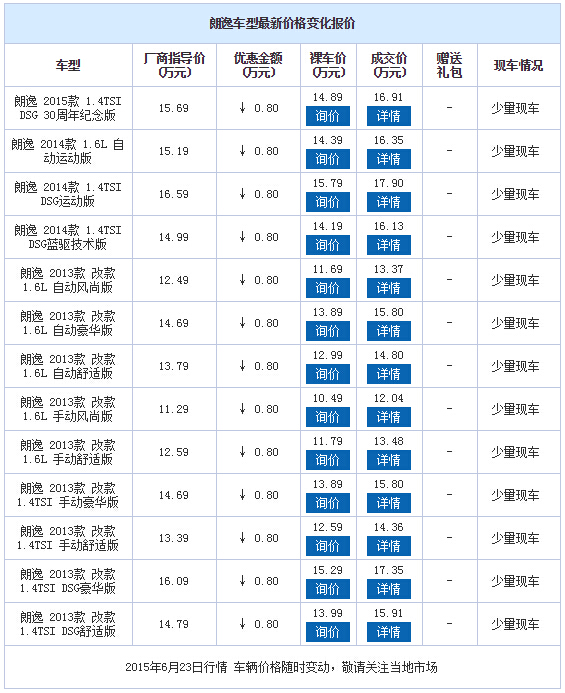 上海大众朗逸 最高优惠0.8万 少量现车