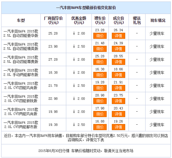 新浪银川汽车讯 近日,编辑从一汽丰田银川安利捷4S店了解到,丰田RAV4现车销售,目前购车部分特价车型可优惠2.50万元,感兴趣的朋友可以到店咨询购买。