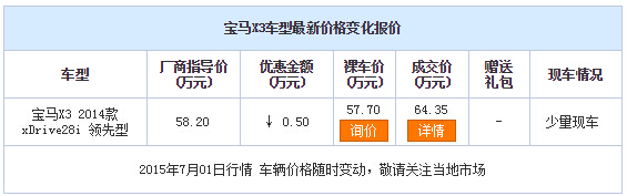 新浪银川汽车讯 近日,编辑从宁夏金润宝宝马4S店了解到,宝马X3现车销售,颜色可选,部分车型购车优惠0.5万元,感兴趣的朋友可以到店咨询购买。