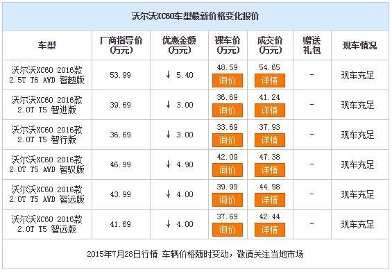 新浪银川汽车讯 近日,编辑从宁夏佳丰沃尔沃4S店了解到,沃尔沃XC60 (配置|询价)现车销售,颜色可选,目前购车部分车型可优惠5.4万元,感兴趣的朋友可以到店咨询购买。