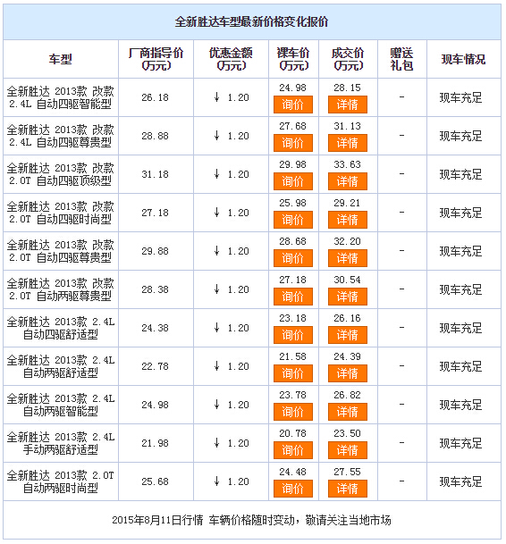 新浪银川汽车讯 近日,编辑从北京现代宁夏好世界4S店了解到,全新胜达 (配置|询价)现车销售,颜色可选,目前购车部分车型可优惠1.20万元,感兴趣的朋友可以到店咨询购买。