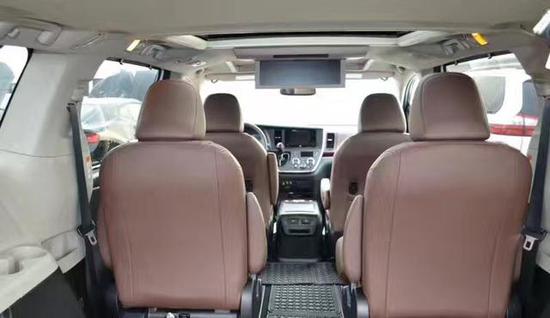 内饰方面:内饰整体很豪华精致,造型很有科技感,和普瑞维亚一样让人印象深刻。居家风格设计的内饰,彰显塞纳低调的奢华。中控台上路设置了前排空调控制及部分车辆功能 按键区域划分明确,操作起来很顺手。四辐多功能真皮方向盘采用了人体工程学设计,上下两头同样采用了桃木装饰,提升了精致度的同时握感也很舒适。多功能按 键集成了蓝牙电话,频道切换,音量控制等常用功能。音响系统使用10喇叭的JBL,多碟DVD换碟机和AUX USB多种音源让你畅享旅途中的惬意。座 椅采用了吸音的材料,能提供最好的的乘座舒适性。内部空间充裕,储物空间多,座椅舒适,即适合商用又可以家庭使用。后座的吸顶式液晶屏幕可以同时播放两部 影片不会相互干扰,而且支持720p高清格式,配合JBL音响绝对的享受,车顶的大天窗有两个,同时满足前后排享受阳光之旅。