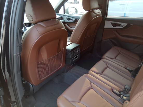 17款奥迪Q7 以它5米长的车身和3米长的轴距来说,要布置三排座位似乎是轻而易举的事,从而基本可以满足不同身材乘客的需求。第三排整体放倒后可以为行李厢腾出不少的空间。前排中央扶手也由分体变成了整体扶手。前排乘客的脚部空间、前排座椅背后和行李箱上都装有储物网袋。