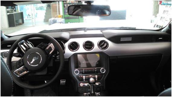 内饰方面:2017款福特野马内饰上主要升级的地方其实只有真皮座椅,其它很多内饰板用的还是硬塑料。2017款福特野马支持MyFord Touch功能的SYNC车载多媒体通讯娱乐系统,可通过中控台上的触控屏进行操作,科技感得到了进一步提升。