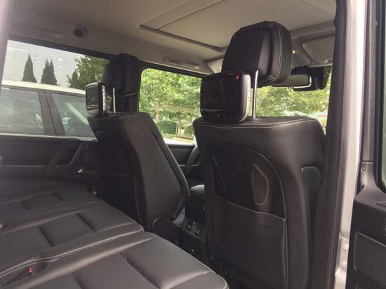 17款G500配置:,4.0t双涡轮增压发动机,带4项腰部支撑前排电动调节座椅,前排加热座椅,前排通风座椅,胎压监测,前后停车雷达,倒车影像,导航,自动远光大灯,哈曼音响,96升油箱,三把差速锁,氙灯,LED行车灯,加热手套箱,后排DVD,变现辅助,前防撞保险杠,桃木方向盘。designo座椅