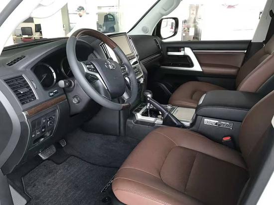 内饰方面:17款丰田酷路泽5700底挂顶配整个操控区域色调为深色系,仪表盘、方向盘和排挡等位置均配以桃木装点,尽显豪华质感。不但具有DVD导航,这款车的倒车 影像还可以显示在内后视镜上;中央扶手箱还装备了冷藏箱,这些都与中规版车型有所不同。