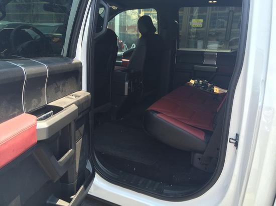 17款福特猛禽F150坐在车里,你不会觉得噪音很刺耳,相反很正常。车窗上能够安装更多的握柄。福特猛禽系列最大的两点就是可随心改装,驾驭者可根据个人的喜好进行改装,针对高扭矩还重新设计了行车电脑,越野性能大大增强系统增加。
