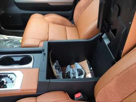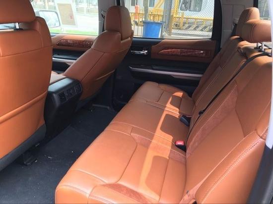 17款丰田坦途1794版加版内部装饰更接近SUV车型,木质的应用让这辆卡车拥有了几份细腻典雅的感觉17款丰田坦途1794版加版在内部设计上,座椅全部采用真皮制作,方向盘和档把为桃木制作。肌肉感的设计同样延续到内饰的设计中。丰田坦途内饰简洁大方依旧突出了实用特点,室内色彩的精致搭配,让整个内部空间既充满质感又倍感时尚。
