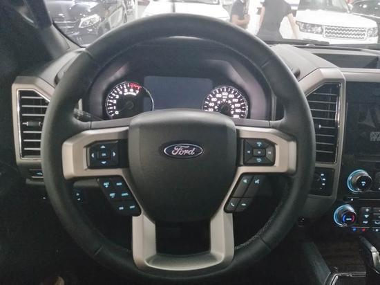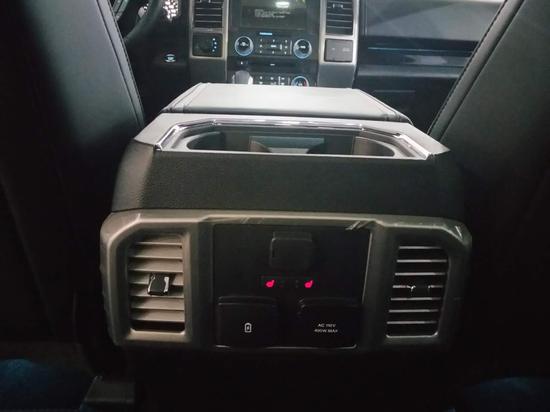 内饰方面:17款福特F150白金版配备标准独特的皮革和布艺装饰的座椅,驾驶员侧的电动十向调节。这些座椅同时具备记忆功能。猛禽的内饰采用独特的中控台和门饰板面漆和真皮包裹的方向盘。猛禽可以单独选装豪华套装,豪华套装中包括了大量的舒适性的技术,比如:座椅的通风加热等。