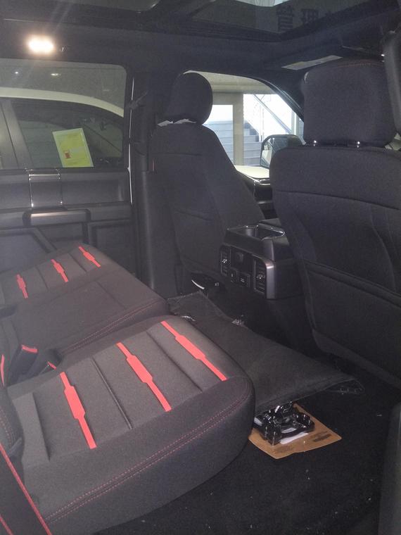 17款福特猛禽F150采用带电冷热功能的可记忆式皮革座椅,头枕四向可调,搭配铝饰条和黑色钢琴烤漆内饰。可电动升降的后窗带隔板和电热除霜功能。福特F150后排的座位三个过分宽敞,乘坐四个身材高大的乘客绝对没问题。