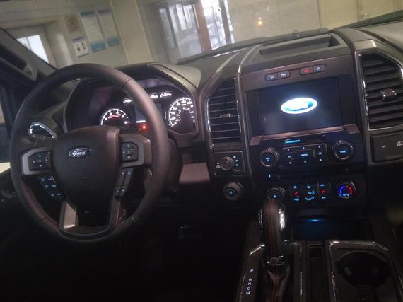 福特F150内饰采用独特的中控台和门饰板面漆和真皮包裹的方向盘。在内部空间的庞大基础上,福特也提供了非常具有舒适性与服务性的内饰配置。 福特配备的是双叉式独立前悬架和钢板弹簧非独立后悬架的配置,并带有FOX的赛车减震器,可以轻松应对各种off-road路况。