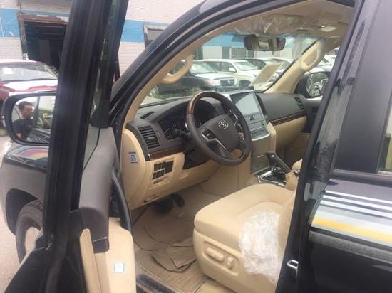 兰德酷路泽4600 17款 GXR摇启版 中东版陆地巡洋舰配置:远程遥控启动,后差,后泊车传感器,智能卡,一键启动,定速巡航,前小杠,前雾灯,LED大灯,日间行车灯,18寸轮毂,可调节带转向灯的后视镜,镀铬车身防护条,车身彩条,后尾翼,挡泥板,底挂备胎,后拖钩,大油箱,丝绒座椅,司机电椅,双区独立空调,桃木内饰,桃木方向盘,6喇叭,天窗,冰箱,2气囊,灭火器。