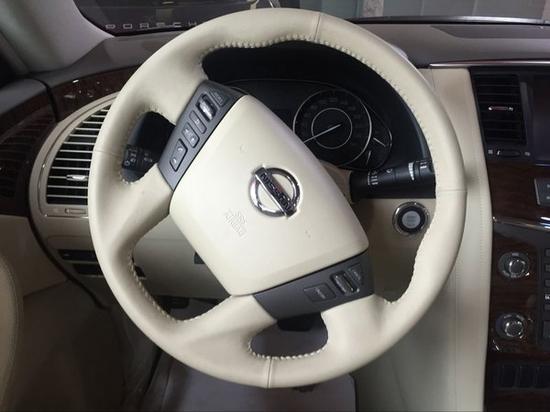 17款日产尼桑途乐Y62车尾不分,新款途乐保险杠与前保险杠相互呼应,更具有设计感,尾灯同样增加了镀铬装饰点缀,内部刹车灯采用LED更有时代感。途乐内饰设计体现了日产的优势,黑色内饰和真皮方向盘加之银色金属条搭配,营造出霸气内敛的风格,也不缺乏细致优雅。