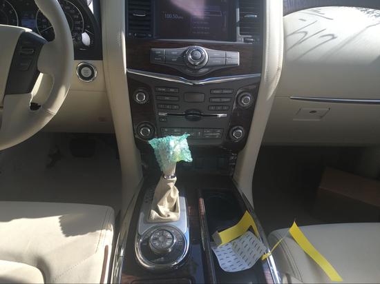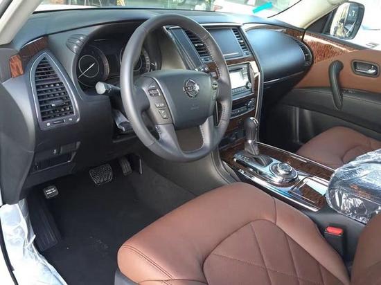 内饰方面:2017款日产尼桑途乐Y62内饰营造出了轻松惬意的驾驶环境。浅色系内饰的看上去柔和清新。内饰做工精细,用料高档,白色真皮座椅和方向盘柔软的质感相当不错。采用了四幅风向盘设计,粗细比较合手再加上真皮加实木的用料,手握感觉极佳。简单中却透露着一种原始的粗犷和令人上瘾的刺激感。方向盘功能强大,集成了音响、空调控制及蓝牙车载免提系统,使驾驶者在行车中更为安全,做到手不离方向盘。