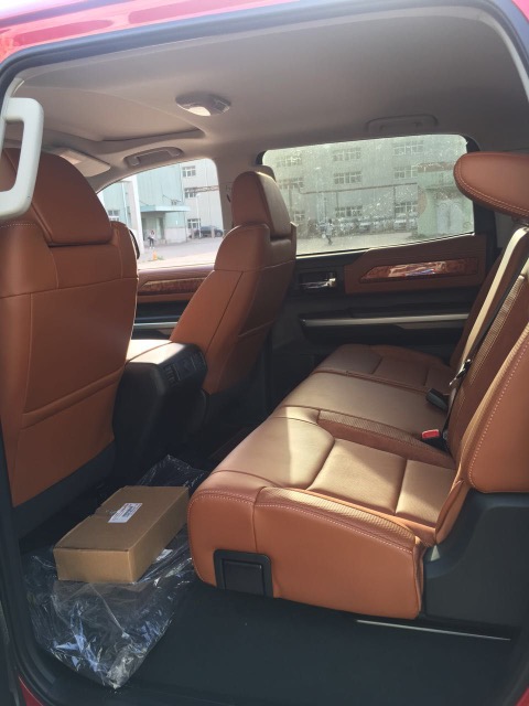 丰田坦途TRD内部装饰更接近SUV车型,肌肉感的设计同样延续到内饰的设计中,木质的应用让这辆卡车拥有了几份细腻典雅的感觉。后排座椅的舒适度一般,乘坐质感较平。仪表采用橙红色指针读取信息非常醒目,车内中央车顶储物格及面板一气呵成,增加了空间利用率。
