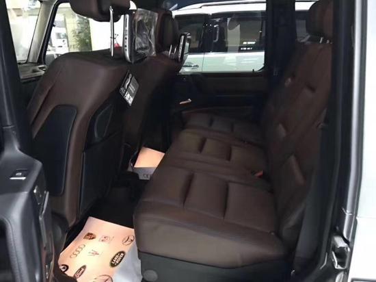 2017款奔驰G500 内饰采用黑色真皮运动座椅,后排座椅可以任意折叠,折叠后,可得到更宽敞的储物空间。奔驰G550 实用性为导向的车身线条比例匀称,清晰地勾勒出奔驰G500硬朗的外形气质。