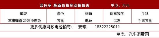 17款丰田霸道2700中东版普拉多 (配置|询价)是现阶段口碑最佳销售最好的SUV,它拥有着粗犷的外表,圆润的车身,棱线的设计更显其优美的线条,17款丰田霸道堪称越野之王,拥有绝对信赖的越野性能。霸道2700在更多发挥充沛动力、表现越野动感的同时,注重车辆主动性安全设计和配置并且这款车还是跋山涉水以及改装的首选,是硬汉们的必备!