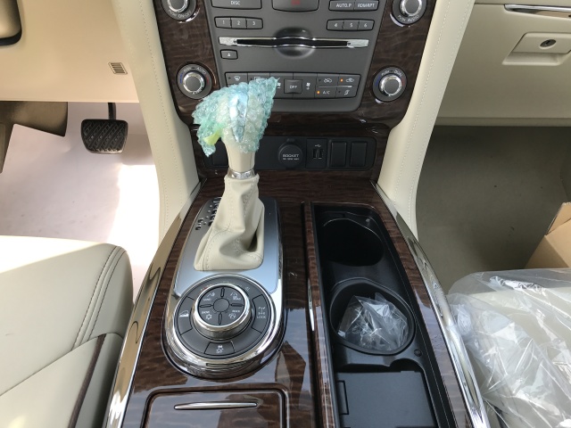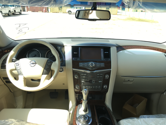18款途乐Y62中东4.0 为三排座车型,内饰整体风格豪华,真皮座椅、DVD娱乐、上下坡以及胎压监测等装备也都悉数出现。新款日产途乐内饰材质也更加的考究,使用了皮革,铝以及木纹样条作为点缀。