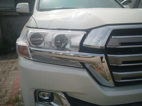 18款丰田兰德酷路泽4000的前组合大灯微微向两边翘起,配合宽大的金属格栅和不同色 的前保险杠,王者傲视一般霸气。大嘴样式的设计只有在丰田的豪华SUV中才能见到,新车稍作改动的 进气格栅与配有LED日间行车灯的氙气大灯所勾勒出的轮廓,散发几分奢华。