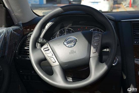 内饰方面:18款途乐Y62中东4.0 为三排座车型,内饰整体风格豪华,真皮座椅、DVD娱乐、上下坡以及胎压监测等装备也都悉数出现。新款日产途乐内饰材质也更加的考究,使用了皮革,铝以及木纹样条作为点缀。采用了豪华轿车惯用的四幅风向盘设计,粗细比较合手再加上真皮加实木的用料,手握感觉极佳。另外方向盘功能强大,集成了音响、空调控制及蓝牙车载免提系统,使驾驶者在行车中更为安全,做到手不离方向盘。同时方向盘加热功能,令驾驶者双手在寒冷的冬季也能得到最佳的呵护。