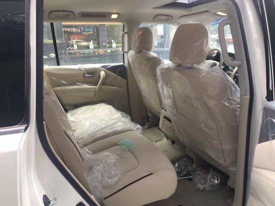 内饰方面:18款日产途乐Y62中东4.0在内部整体采用了深色调的颜色搭配,带来具有高贵感的内饰氛围。同时,该车中控台及 方向盘运用了大量的皮质包裹,在质感的营造上也较为出色。此外,这款车在换挡杆周围等区域融入了木纹装饰,这也相应 提升了其内饰整体的豪华感。