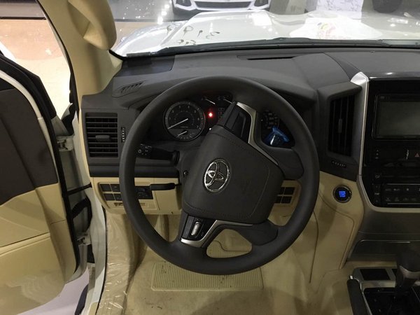17款丰田酷路泽4000操控台没有过于繁杂的操控按钮,多功能方向盘方便了驾驶员的操控,轻松驾驶。设计师并没有忘记它越野车的身份,所以你能找到很多硬朗的线条,其实用性和舒适性更可媲美豪华轿车。中控台换成了具有磨沙手感的金属板件,增强了内饰的质感。上方为多功能显示屏,中间为音响控制系统,左右两侧为空调出风口和空调温度控制按键。