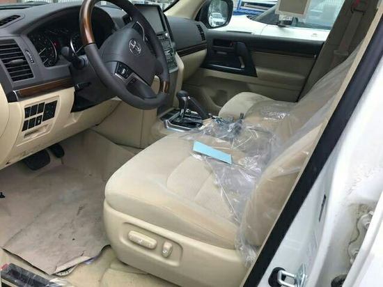 2017款丰田酷路泽EXR配置:7座的手续,金属漆,蠕行系统,两气囊,主驾驶电动座椅,中心差速锁,天窗,丝绒座椅,桃木内饰,桃木多成果方向盘,冰箱,智能卡,一键式启动,遥控启动,巡航,触摸大屏,迎宾灯,倒影,自动空调,气泵,蓝牙,坡道资助,氙灯LED,285-18轮毂,脚踏,前二后四电眼,5速,拖钩,银色行李架,雾灯,双油底挂,灰色亮条中网,胎压监测,冲沙旗,车载气泵。