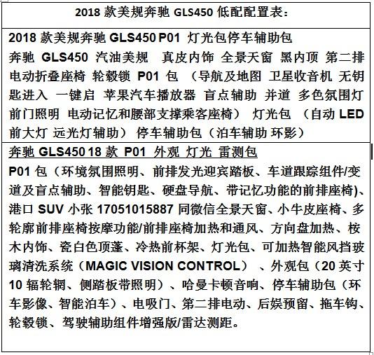 18款美规 GLS450 白/黑 配置:P01 小窗 灯光包 外观包 停车辅助包 哈曼 拖钩 发光星标 后预留 车轮锁 方向盘加热 无烟煤杨木内饰 镀铬套件