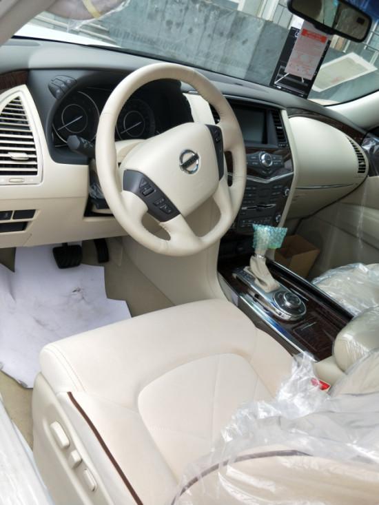 17款尼桑途乐Y62 4.0SE中东版仍然为三排座车型,内饰整体风格豪华,真皮座椅、DVD娱乐、上下坡以及胎压监测等装备也都悉数出现。新款日产途乐内饰材质也更加的考究,使用了皮革,铝以及木纹样条作为缀。