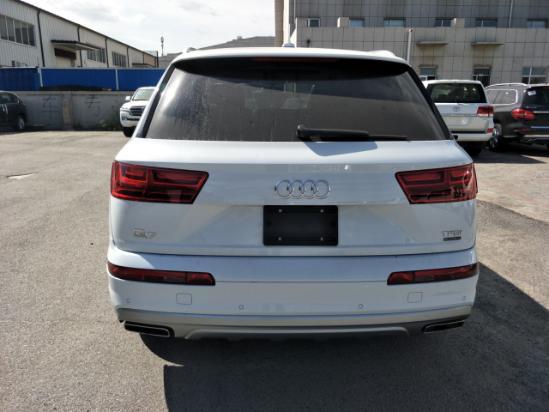 奥迪Q7 (配置|询价)车尾部下护板处的设计也有小幅变化。2017款奥迪Q7有着霸气的外观,且不失内在独特的气质,车身线条简洁流畅,运动感和时尚感兼备。前进气格栅由老款竖立式改为横幅式进气格栅,看起来更加霸气非凡,雾灯处的进气坝由老款的格栅式改为蜂窝状,整体看起来更加凶悍无比