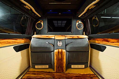 奔驰V260L改装房车美杜莎,将中式古典美学与西方现代流行设计相溶,除了上文中提及水墨纹路桃木地板,车壁上也运用了大量的古风木纹雕饰,豹子身上的斑点 是它们的天然伪装,当阳光透过树叶洒在豹子金色的皮毛上,它们身上的斑点就会与周围的环境浑然一体,形成一层华丽的伪装,而这款奔驰V260L改装房车上的 装饰则恰恰相反,是为了凸显气度。