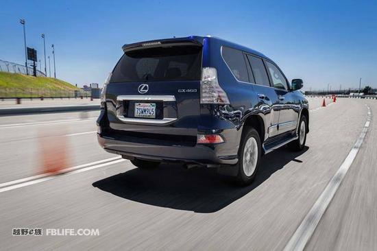 GX460搭载的是一台4.6升V8发动机,其最大功率301马力,峰值输出扭矩446牛·米,与之匹配的是一台六速自动变速箱。GX460的整车重量达到了2.36吨,其0-96km/h直线加速时间为7.4秒,1/4英里加速时间为15.8秒(尾速142.6km/h)。制动性能方面,从96km/h到刹停的制动距离为40.5米,但是在连续紧急制动之后会出现比较明显的性能衰减。另外,安全带预紧功能略显激进,紧急制动时乘客恐怕会受到一点惊吓。