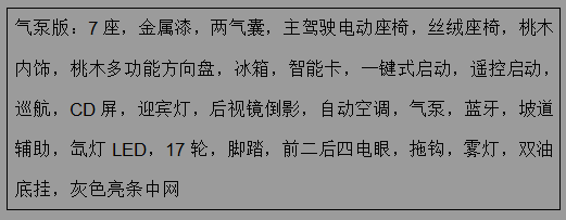 最新到港车型配置如下: