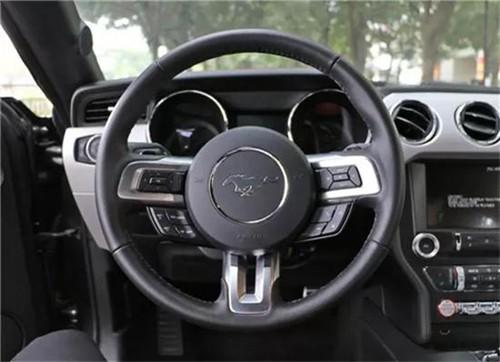 福特野马中控台上的元素进行重新布局,门板上的按钮在高度上呈对称布局,人体工学效果极佳。整体设计风格延续了野马经典的设计理念和元素。野马仪表台上原先的金属喷涂塑料,这次全部改为真正的铝合金面板,甚至包括方向盘上的银色部分