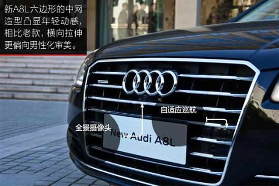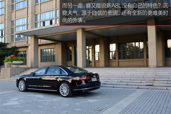 奥迪A8外形增加了许多运动元素向人们展示一个动感与豪华的完美组合。车顶饱满流畅的曲线很容易使人联想到双门跑车的风格而且能极其自然地将视线引向车尾。外观低调而霸气,线条过渡自然,很符合东方人的审美习惯,并具备了奥迪全新家族风。