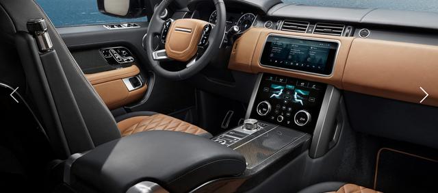 全新2018款路虎揽胜行政 内饰方面:路虎揽胜行政车内强大的功能并非体现在众多按键上,8英寸高分辨率液晶屏提供了出众的整合方案,至于音频输出,可以选择用29个扬声器或是原厂带的蓝牙耳机收听。控制台顶端以及方向盘以牛津皮革包裹,无论是视觉效果还是质感都无与伦比。中央显示屏双画面技术可使驾驶者和乘客同时观看不同的画面。