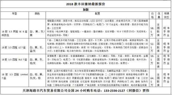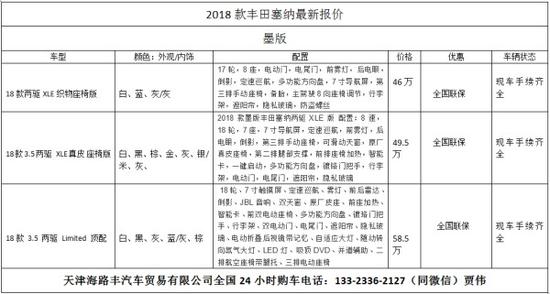 2018款丰田塞纳最新市场行情,(仅供参考,具体价格优惠请致电新闻末端联系方式。)